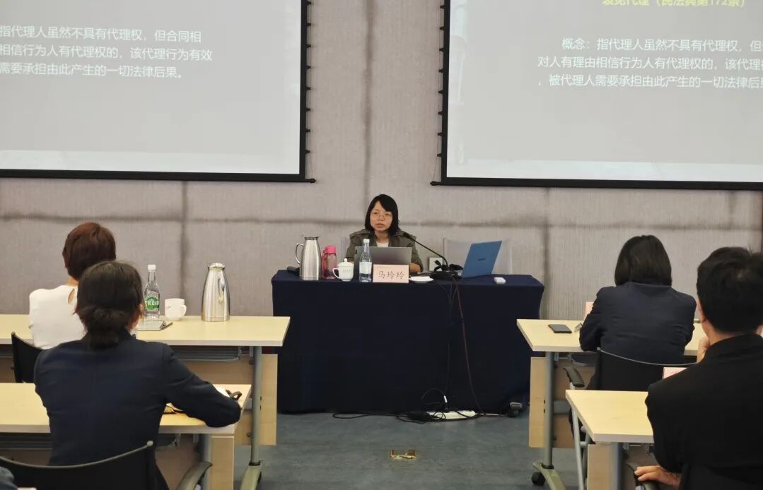 培训中,马玲玲律师结合案例,梳理了企业存在的签约行为和合同文本不规范、资信调查缺失、合同管理手段落后等突出问题,揭示了风险根源。其次,她提出,建立完善的制度是防范合同风险的必要手段,重点对资信调查、合同审查审核、合同履行等8种管理办法进行详细讲解,同时阐释了表见代理、瑕疵担保义务、代位权、撤销权等概念,帮助参会人员更好地理解和运用相关法律知识。培训末尾特别安排了交流答疑环节,参训者围绕合同工作中的“疑难杂症”踊跃提问,马律师结合法律理论与实务经验,逐一剖析问题本质,提供切实可行的解决方案,大家纷纷表示深受启发。