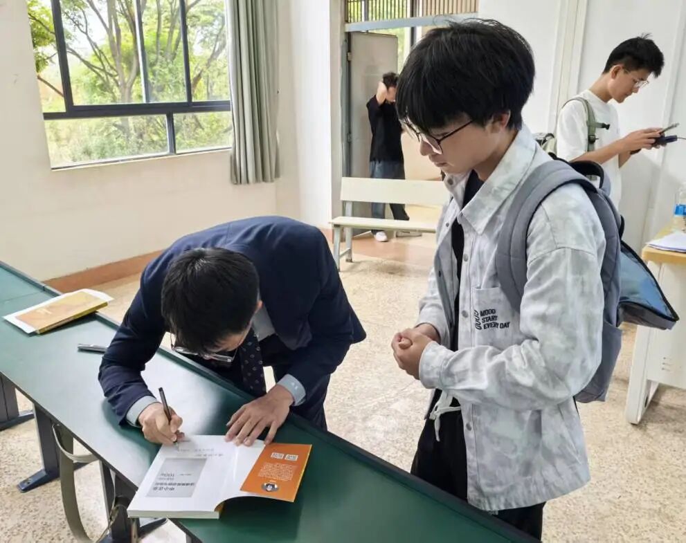 讲座尾声,段律师向现场同学赠送其专著《中小企业法律风险识别与防控》,并亲笔写下赠言寄语,鼓励同学们将法律知识转化为保护自身权益的“硬本领”。